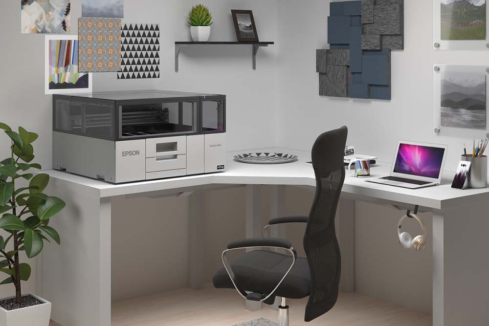 La SureColor V1070 es una impresora A4 que se destaca por su capacidad de ofrecer resultados profesionales a una fracción del costo de otras impresoras UV planas comparables en el mercado¹. Su diseño compacto y exclusivo, que ahorra espacio, permite su integración en prácticamente cualquier entorno de trabajo, incluso instalada junto a la pared, optimizando el flujo de trabajo sin sacrificar rendimiento.